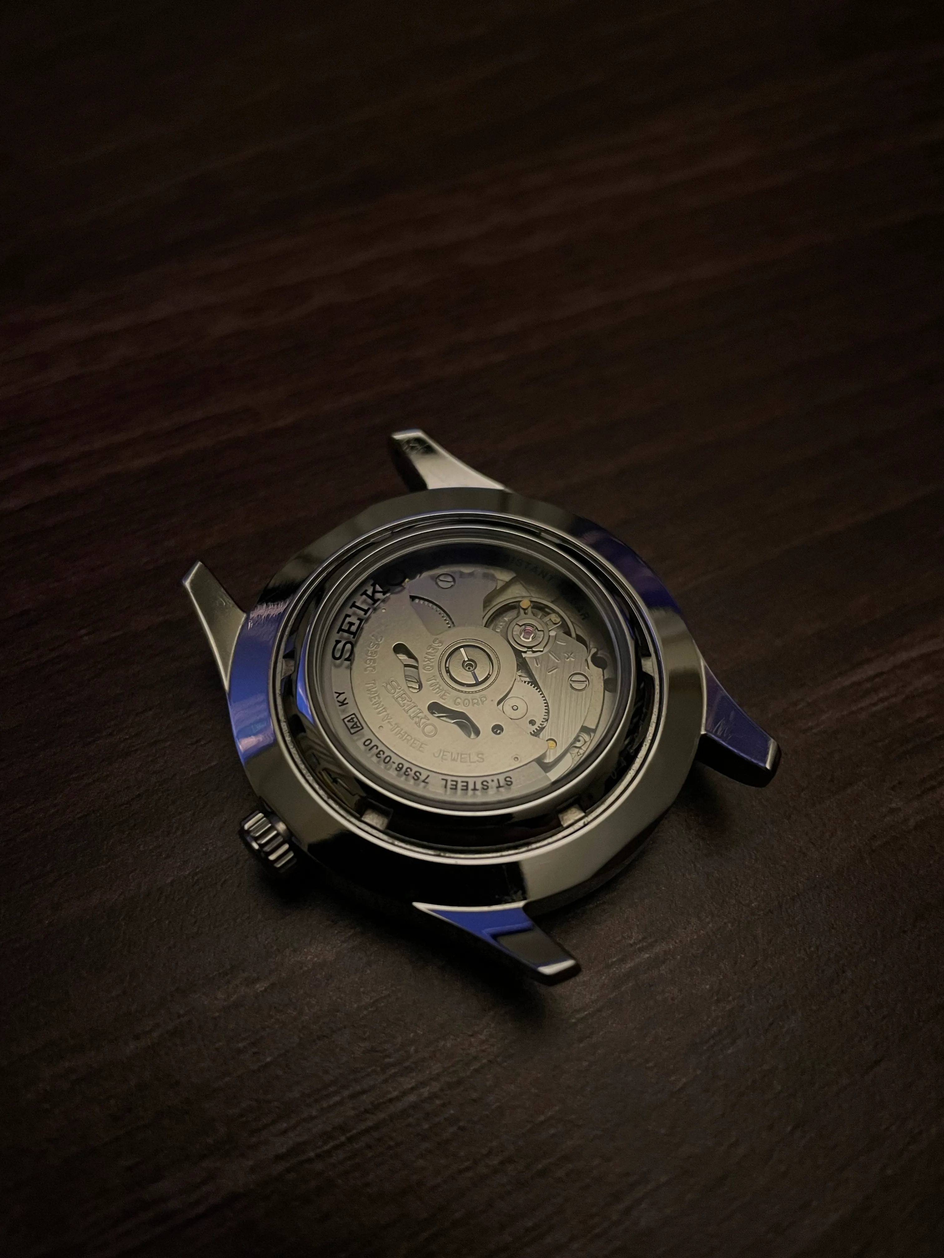 On the inside, it uses a 7S36C automatic movement, which is a pretty basic movement on paper. Yet, despite its shortcomings (lack of hacking or hand-winding), I greatly appreciate the engineering gone into building a decently performant movement at a reasonable price.